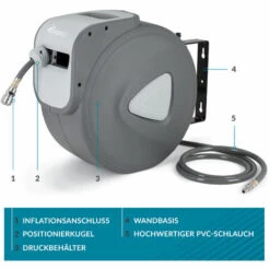 RIBIMEX Dévidoir Automatique à Air 16m 9,3×15,3mm Tuyau Gomme/pvc Support Métal..