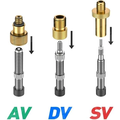 Grand jeu d’adaptateurs de valve de vĂ©lo: Embout pompe velo est votre meilleur choix, et les diffĂ©rentes spĂ©cifications 12pcs peuvent rĂ©pondre Ă diffĂ©rents Ă©quipements gonflables. Ne vous inquiĂ©tez pas des autres spĂ©cifications. Convient pour les valves Dunlop (DV), Presta, Sclaverand (SV), Presta on => Schrader / Car valve (AV)