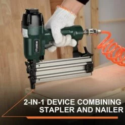 【Agrafeuse pneumatique 2 en 1】C’est une agrafeuse multifonctionnelle est très pratique, compatible avec deux type d’agrafes, la taille d’agrafe: 20-50 mm et 20-40 mm, elle est équipée aussi 180 pin/68 agrafes.