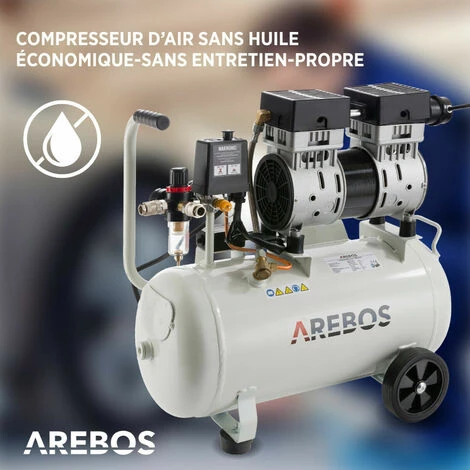 Le compresseur d’air AREBOS est doté d’une poignée caoutchoutée utile pour un transport pratique et facile. Les pieds en caoutchouc résistant aux vibrations assurent une installation antidérapante et un travail sûr.