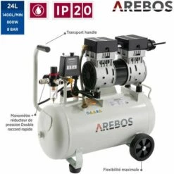 Le compresseur d’air AREBOS de 24 litres est parfait pour générer de l’air comprimé pour les outils pneumatiques, tels que les soufflettes et les gonfleurs de pneus.