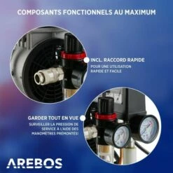 Que vous utilisiez le compresseur pour gonfler des pneus ou pour une utilisation avec des clés à chocs ou d’autres gadgets, les possibilités sont infinies avec ce compresseur d’AREBOS.
