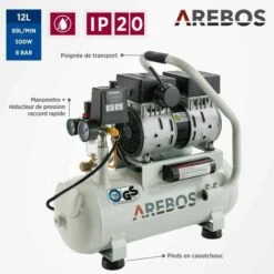 [Certifié] Le compresseur silencieux AREBOS est conçu avec une classe de protection IP20 et a été testé et certifié par TÜV Süd. Combiné à une finition de haute qualité, ce compresseur offre une sécurité maximale lors de la pratique de loisirs et de travaux.