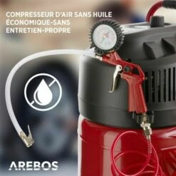 Le compresseur d’air AREBOS est doté d’une poignée caoutchoutée utile pour un transport pratique et facile. Les pieds en caoutchouc résistant aux vibrations assurent une installation antidérapante et un travail sûr.
