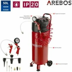 Avec une puissance de 1500 W, un régime de ralenti de 220 l/min et une capacité de chaudière de 50 litres, ce compresseur d’air AREBOS ne tombera pas en panne si vite. Malgré la pression maximale de 10 bars, le compresseur se caractérise par un bruit de fonctionnement agréable.
