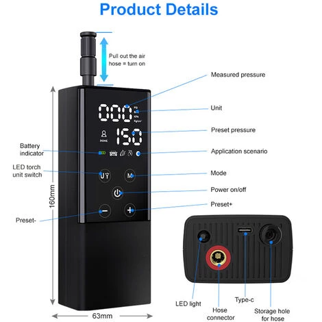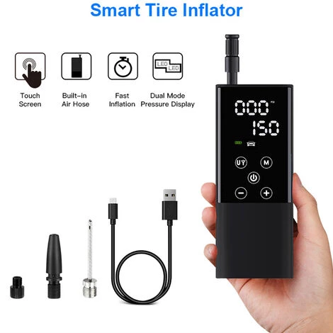 1. Détection précise : pompe à air sans fil portable, petite et légère, facile à transporter, avec écran tactile et double affichage numérique LED, mesure précise de la pression, compréhension rapide et intuitive de l’état de la pression des pneus, pour garantir la sécurité des déplacements.