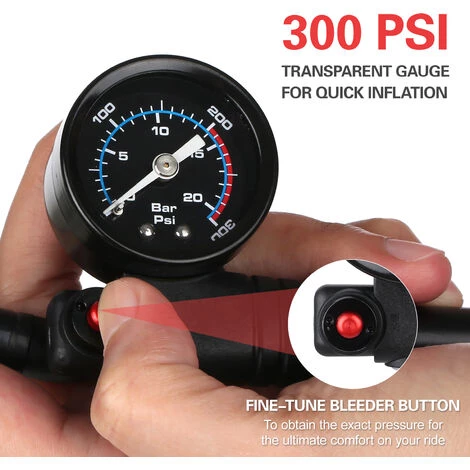 Conçu pour gonfler les fourches avant et arriÚre du VTT, la tige de selle à suspension, les pneus de vélo et de vélo électrique.
