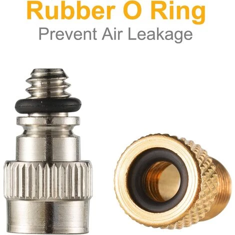 Material Matériau en laiton de qualité: L’ensemble d’adaptateurs de valve de vélo est fait de laiton et de plastique de haute qualité, résistant à la corrosion, pas facile à décolorer après une utilisation à long terme, durable, longue durée de vie et a des filetages et du caoutchouc souple pour éviter les fuites.