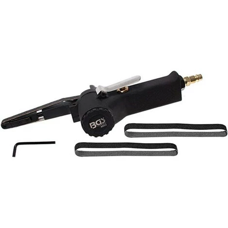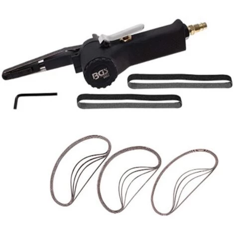 - Une lime polisseuse pneumatique inclinable à bande étroite de 10 x 330 mm de qualité BGS Technic :