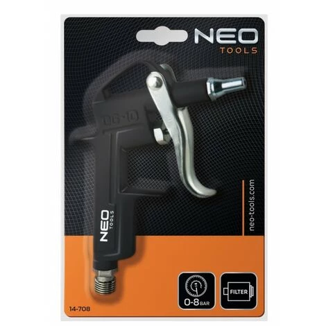Pistolet de soufflage NEO Ă buse courte, en aluminium. Pression de service maximale 12 bars. Il a un crochet pratique pour accrocher. Un pistolet Ă usage universel dans l’atelier, entre autres pour nettoyer les filtres, souffler les impuretĂ©s, sĂ©cher Ă l’air comprimĂ©. Le certificat CE confirme la haute qualitĂ© de l’outil.