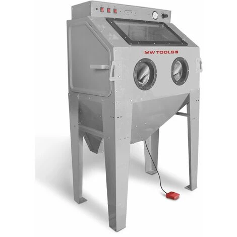 Les portes peuvent donner accĂšs sur des zones de stockage sĂ©parĂ©es pour les piĂšces sales et propres Le pulvĂ©risateur fixe est actionnĂ© avec une pĂ©dale Aspiration efficace grĂące au prĂ©filtre Ă cartouche cyclonique Cartouche filtrante principale de 8 Ă”m, avec grande surface filtrante de 4,42 mÂČ Moteur de 550 W silencieux et grande capacitĂ© de 15 mĂÂł/min Ouverture d’Ă©vacuation pour l’Ă©limination de l’abrasif Gants lourds pour une bonne protection des mains Ă©clairage intĂ©grĂ© Cabine en acier Hublot en verre trempĂ© Convient pour : Perles de verre Sable desilice Oxyde d’aluminium Corindon ordinaire LivrĂ©e avec : Barre supĂ©rieure avec boutons de commande et voyants RĂ©gulateur de pression avec manomĂštre Gants en latex de haute qualitĂ© Ă©clairage dans un boĂźtier sĂ©parĂ© Fusible pour le circuit Ă©lectrique Verre de protection et film de rechange avec 5 films de rĂ©serve pour l’Ă©clairage et 5 pour le hublot Pistolet de sablage avec tĂȘtes en cĂ©ramique 2 x 5 mm + 2 x 6 mm + 2 x 7 mm