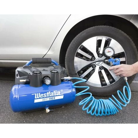 Deux batteries lithium-ion 18 volts de haute qualité de la série Westfalia 18 volts alimentent ce compresseur d’air.