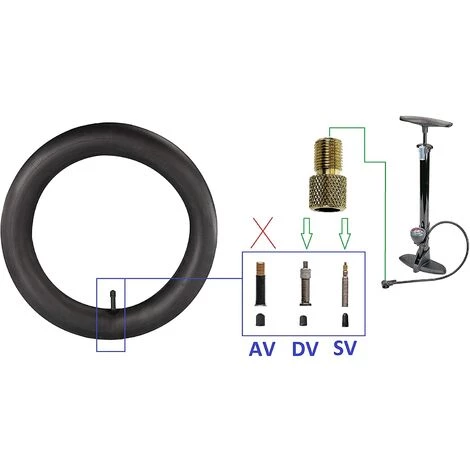 Lot de 2 adaptateurs de valve Ă visser / Ces connecteurs permettent de gonfler votre chambre Ă air de valve Presta ou Dunlop Ă l’aide de votre pompe de gonflage schrader (type voiture) / Avec joint d’Ă©tanchĂ©itĂ© pour Ă©viter les pertes d’air lors du gonflage / Avec joint d’Ă©tanchĂ©itĂ© pour Ă©viter les pertes d’air lors du gonflage
