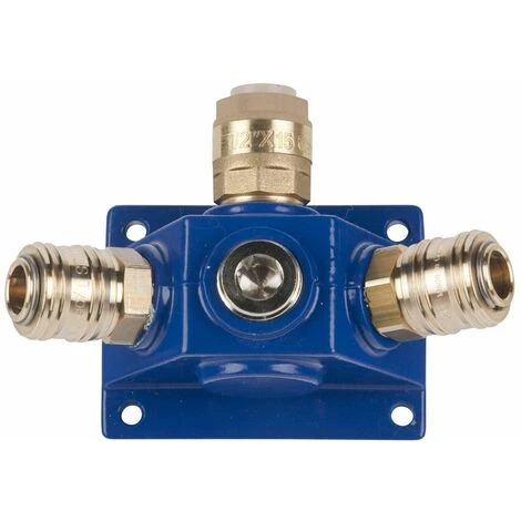 BoĂźte de distribution alu avec un raccord rapide F, 2 raccords rapides EURO et 1 bouchon.