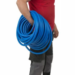 - Le tuyau pour compresseur en polymère PVC hybride avec armature en tissu a un diamètre intérieur de 6 mm, un diamètre extérieur de 11 mm et la pression de travail maximale est de 20 bars, le tuyau est livré sans raccord