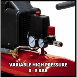 - Le compresseur est Ă©quipĂ© dâun manomĂštre et dâun raccord rapide pour la pression de fonctionnement rĂ©gulĂ©e, ainsi quâun grand manomĂštre pour la pression non rĂ©gulĂ©e de la cuve.