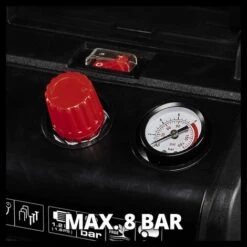 Grâce au réducteur de pression réglable jusqu’à 8 bars, le compresseur est adapté à une large gamme d’applications.