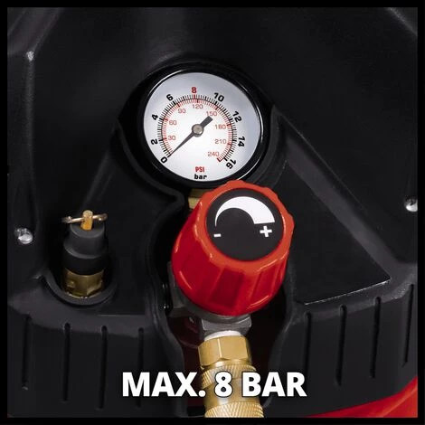 Le compresseur TC- TH-AC 200/30 OF est un compresseur extrêmement performant et compact avec lequel vous pouvez effectuer de nombreux travaux. Ce compresseur d’air sans huile ne nécessite aucune lubrification, il nécessite donc très peu d’entretien. La pression peut être contrôlée et ajustée pour de nombreuses applications entre 0 et 8 bar au moyen d’un réducteur de pression, est indiquée par un manomètre et peut être taraudée à l’aide d’un raccord à verrouillage rapide. Avec son réservoir de 30 litres, TH-AC 200/30 OF dispose de réserves suffisantes d’air comprimé, sans avoir à redémarrer le moteur, tout en restant compact et maniable. Pour une sécurité optimale des utilisateurs, il existe un clapet anti-retour et une soupape de sécurité.