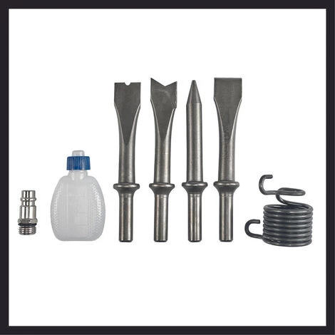 - Le kit de 4 burins 120 mm est inclus dans la livraison, accompagné d’un flacon d’huile, d’un raccord et d’un ressort de traction.