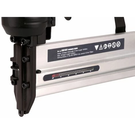 La cloueuse pneumatique combi ATM1051 de Ferm vous permet de monter et fixer rapidement et aisément des meubles ou des panneaux. L’agrafeuse-cloueuse dispose d’un accouplement universel DIN et Orion, pour un raccordement facile avec votre compresseur. La pression de fonctionnement de la machine est d’au moins 4 bar avec un maximum de 7 bar. Cette cloueuse pneumatique a un design ergonomique ce qui augmente le confort d’utilisation. L’indicateur de réserve de l’appareil vous montre exactement le niveau d’agrafes et de clous. Les 300 clous et 100 agrafes fourni avec la machine se gardent ensembles avec l’ATM1051 dans la boîte de rangement incluse.
