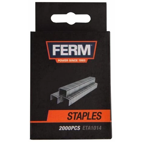 Les agrafes FERM ETA1014 ont une forme U et une largeur de 12 mm. Les agrafes sont fournies à partir de 2000 pièces et conviennent à toutes les marques agrafeuse électriques (veuillez noter les dimensions).