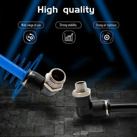 FLETéçA 10 Pièces Connecteurs Pneumatiques, Raccords Rapides à Filetage Mâle, Noir Coude Pneumatique Connecteur, Convient Aux Outils De Bricolage(6mm, 1/4″)