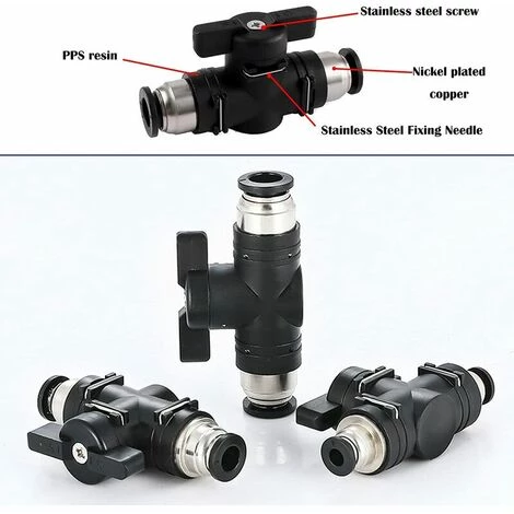 Interrupteur contrĂŽlable : connecteur pneumatique rapide noir avec vanne associĂ©e, il vous suffit de tourner la poignĂ©e de la vanne d’eau pour l’ouvrir et la fermer, facile Ă utiliser.