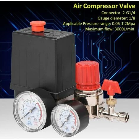 Description du produit Caractéristiques: Connecteur: 2-G1 / 4 Diamètre de la jauge: G1 / 8 Plage de pression applicable: 0.05-1.2Mpa Débit maximum: 3000L / min Poids: 581g Emballage inclus: 1 x commutateur de pression de compresseur d’air En lire plus Le joint de piston adopte la bague d’étanchéité en V, une bonne étanchéité, une résistance à l’usure et une stabilité. La structure du piston, le débit est 30% supérieur à celui du type à diaphragme traditionnel. La structure du corps de la vanne a un orifice de débordement pour une réduction rapide de la pression Cet ensemble pressostat est largement utilisé dans les compresseurs à air direct, les compresseurs à air muet sans huile et les compresseurs à bande. ATTENTION: Les petites pièces du produit sont en alliage d’aluminium. Lors de l’installation, ne pas utiliser de ruban de matière première pour envelopper et serrer excessivement les joints, sinon les joints sont faciles à casser PETIT CONSEIL: Lors de l’installation de petites pièces, il est recommandé d’utiliser de la colle à filetage pour l’installation. Après un léger serrage, vous pouvez l’utiliser lorsque la colle est sèche. Il n’est pas nécessaire d’envelopper la matière première avec une force excessive.