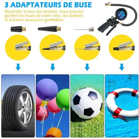 - Large gamme d’utilisation: Manomètre Digital Convient pour les vélos, voitures, camions, motos, coussins d’air, articles de sport, ballons, autres articles gonflables, etc …