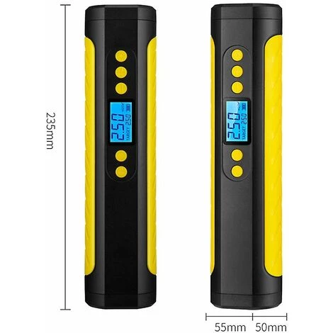 Description du produit MatĂ©riau : ABS Taille : 5 * 5 * 23,5 CM Courant : 10 A Tension : 12 V Volume d’air : 250 Puissance : 80 W CapacitĂ© de la batterie : 2000 mAh Type d’alimentation : sans fil Couleur : jaune QuantitĂ© : 1 piĂšces Contenu de l’emballage : 1 pcs * Pompe Ă©lectrique 1. Inflation intelligente et rapide Le compresseur d’air Ă©lectrique dispose de 4 unitĂ©s d’affichage : PSI, BAR, KPA, Kg/cm. Une fois connectĂ© Ă la valve du pneu, la pression actuelle des pneus s’affiche afin que vous puissiez surveiller la pression des pneus Ă tout moment. Jusqu’Ă 150 psi, ce compresseur d’air pour pneus de voiture peut gonfler vos pneus de voiture standard en 30 secondes et 3 Ă 4 minutes pour gonfler un pneu normal de 0 psi Ă 35 psi. 2. Batterie au lithium intĂ©grĂ©e Gonfleur de pneu sans fil 2000mAh Grande batterie Li-ion rechargeable intĂ©grĂ©e de 2000mAh, mini bo?tier, le compresseur d’air rechargeable peut ĂȘtre gonflĂ© en cas d’urgence. C’est aussi une banque d’alimentation de secours que vous pouvez utiliser pour recharger votre tĂ©lĂ©phone portable ou d’autres appareils Ă©lectroniques. 3. Lampe de poche LED et Ă©cran LCD La pompe Ă pneu est Ă©quipĂ©e d’une lampe de poche LED, pratique pour une utilisation nocturne. L’Ă©cran du gonfleur est dotĂ© d’un Ă©cran LCD clair et lumineux. Vous pouvez voir clairement les informations sur l’Ă©cran, que ce soit dans un endroit sombre ou Ă l’extĂ©rieur avec un fort ensoleillement. 4. Pompe Ă pneu multifonctionnelle Notre pompe Ă pneu de voiture est Ă©quipĂ©e d’une variĂ©tĂ© de buses d’air qui peuvent ĂȘtre utilisĂ©es pour toutes sortes de vĂ©los tels que les vĂ©los de montagne, les vĂ©los de course. Il est Ă©galement utilisĂ© pour la moto, la voiture, les ballons ou les anneaux de natation. 5. Pompe Ă air portable et de sĂ©curitĂ© Le gonfleur de pneu sans fil est petit, lĂ©ger et facile Ă transporter et Ă voyager. Protection contre les sous-tensions, le dispositif de protection de la batterie intĂ©grĂ© coupe automatiquement le courant lorsque la tension est trop faible afin d’Ă©viter une dĂ©charge profonde de la batterie lors d’un stockage prolongĂ©
