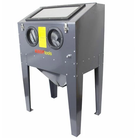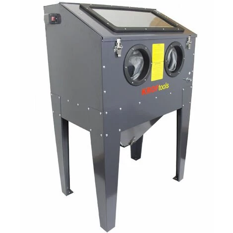 Couvercle Ă©tanche au produit de sablage avec vitre, gants de protection fixes et filtre de la chambre intĂ©rieure pour empĂȘcher que le produit de sablage ne s’Ă©chappe.