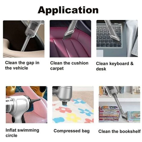 Moteur en cuivre pur, puissance élevée de 120 W. Fonction 3 en 1, aspiration, soufflage, aspiration, aspiration + brossage. Conception haute densité, pas de fuite d’air, conception étanche, pas de fuite de poussière.