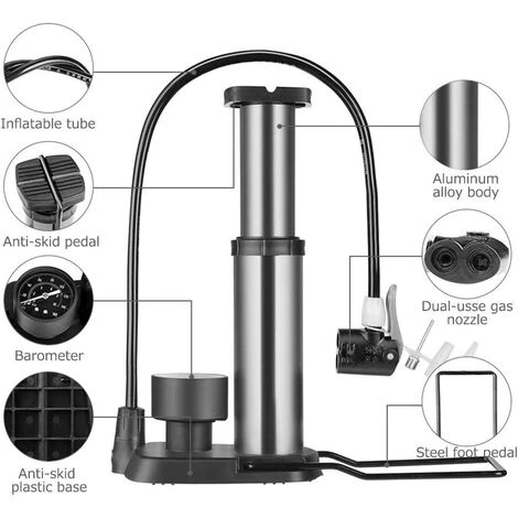 - UTILISATION MULTIPLE ET UNIVERSELLE – La pompe Ă air de vĂ©lo de conception professionnelle est compatible avec les valves doubles Presta & Schrader. Notre pompe Ă pied pour vĂ©lo est facile Ă changer, pas besoin de remplacer les tĂȘtes de pompe, serrure Ă©tanche sans fuites d’air.