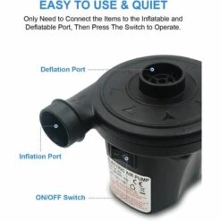 POMPE Ă AIR ĂLECTRIQUE PUISSANTE:2 en 1 (AC 220V-240V/12V) 12V Gonfleur Electrique pompe Ă air multifonctions est si puissante que vous pourrez non seulement gonfler des objets, mais Ă©galement les dĂ©gonfler en aspirant l’air. Le symbole  » _  » sur le commutateur  » ON « ,  » 0  » signifie  » OFF « .