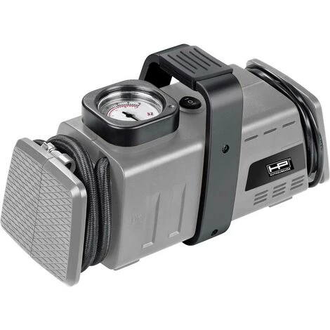 Moteur Ă entraĂźnement direct, extrĂȘmement puissant. ManomĂštre avec affichage de la valeur de mesure. Avec 3 adaptateurs supplĂ©mentaires pour pneus de vĂ©lo et articles de loisirs.