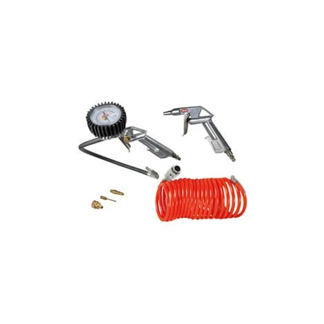 Description du produit Ce kit d’accessoires pour pneus Valex est l’un de ces produits qui nous semblent essentiels pour utiliser au mieux le compresseur avec des accessoires de base , faciles Ă utiliser , qui vous permettront de rĂ©aliser de nombreux petits travaux dans votre voiture. Maison. Le kit comprend: Pistolet avec indicateur de gonflage Soufflette Tuyau spirale de 5 m avec bornes Ă baĂŻonnette et connecteur rapide 3 buses pour l’inflation