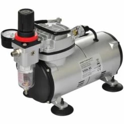 Ce compresseur Ă piston sans huile avec rĂ©gulateur d’air, filtre Ă air et manomètre convient Ă tous les aĂ©rographes avec une taille de buse de 0,2 Ă 1,0 mm.