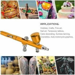 | Ce mini compresseur utilise la conception spéciale de type non pétrolier. Son non-huile rend le moyen de transmission ne soit pas polluée. Ce kit de compresseur d’air airbrush professionnel est largement utilisé dans la fabrication du modèle, la décoration gâteau, nail art, etc. Vous pouvez avoir un essai. Fonctionnalités: buse d’aiguille de 0,3 mm, large spray, déclencheur d’action pour pulvérisation facile et précis. Action airbrush alimentation par gravitation art, nail art, décoration de gâteaux, passe-temps, etc. Couleur du support: pigments d’aquarelle, des encres et des colorants, des acryliques, des uréthanes automobiles, émaux, (non compris). Fait de matériaux de belle qualité, pratique à utiliser. Facile recharges fluides et un nettoyage facile. gravitation action professionnelle kit pour nourrir airbrush artisanat de peinture passe-temps. Airbrush pour modélisme, décorations de gâteaux, dessiner le contour de camouflage, nail art, etc. Enregistrement beaucoup plus de temps que le dessin à la main et parfait pour votre jet d’affaires peinture. la conception de déclenchement d’action permet d’économiser des matières premières et pratiques. Largement utilisé par les amateurs de modèle général. Il existe deux types de moyens de connexion, adapté à de nombreux types de compresseurs et de la machine de pulvérisation, équipé d’une petite clé, une tasse de peinture, une paille, et un connecteur d’entrée d’air, la paille peut inhaler la peinture ou d’autres liquides. Avec la fonction de réglage de la sortie d’air, vous pouvez régler en fonction des différentes conditions d’utilisation. Caractéristiques: Matériel: alliage d’aluminium Couleur: rouge, jaune (facultatif) Diamètre de la buse: 0,3 mm / 0.01in PREP Fluide: 7cc Pression de service: 5-50PSI Longueur totale: 148mm / 5.8in Poids de l’article: 58g / 2,0 oz Taille de l’emballage: 173 * 93 * 27mm / 6,8 * 3,7 * 1.1in Poids du colis: 98g / 3,5 oz Liste paquet: 1 * 0.3mm Aérographe Outil de pulvérisation 1 * 7Cc peinture Coupe 1 * Petite clé 1 * Paille 1 * Connecteur d’entrée d’air 1 * Manuel de l’utilisateur |