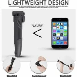 ăULTRA LĂ©GER ET GAMME COMPLĂšTE D’ACCESSOIRESă Il est presque sans poids (seulement 160 g) et extrĂȘmement compact qui peut ĂȘtre fixĂ© au cadre du vĂ©lo sous le porte-bidon avec le support de montage. Les accessoires comprennent une aiguille Ă gaz pour gonfler les balles de sport, une ceinture fixe et un support pour fixer la pompe sur le vĂ©lo.