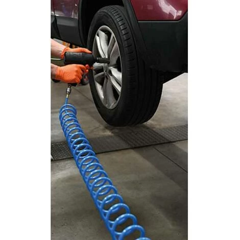Tuyau d’air comprimĂ© spiral avec raccords. Pour l’extension ou le raccordement d’outils pneumatiques au compresseur. Rangement peu encombrant. Ce texte a Ă©tĂ© traduit par une machine.
