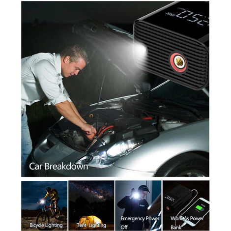 ◆Fonction pompe à air : l’alimentation intègre une pompe gonflable, qui peut être utilisée comme gonflage des pneus.