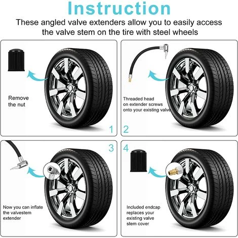 LITZEE 20CM Gonfleur Pneu D’extension Cordon Adaptateur De Valve De Pneu Extension De Pompe Voiture Tube D’extension De Gonfleur De Pneu Pour Voiture Moto Vélo