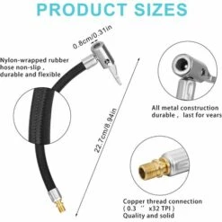 - Facile à installer et à utiliser : connectez l’interface filetée mâle à la pompe à air et appuyez rapidement sur la poignée du mandrin de gonflage pour démarrer le gonflage.