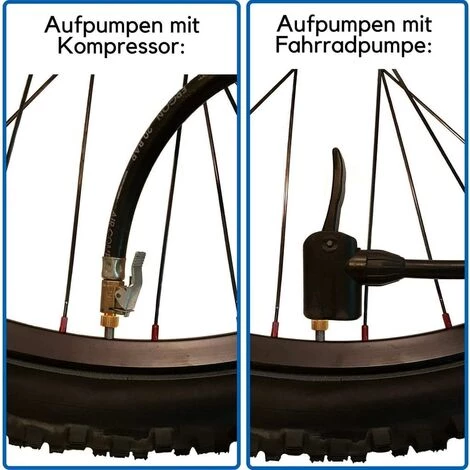 Vous pouvez donc les emporter partout et les pneus à plaque disgracieuse sur le vélo peuvent être facilement gonflés. Que ce soit avec le compresseur, la mini pompe ou sur le station-service. Vous pouvez utiliser les adaptateurs de roue avec n’importe quel type de pompe.