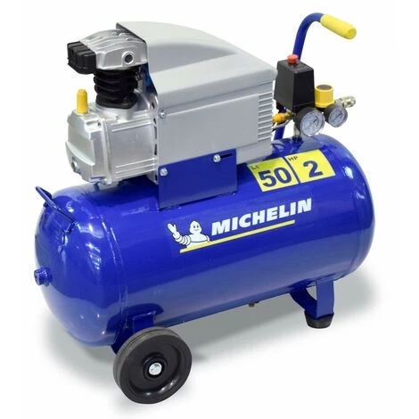 Une sortie à raccord rapide, tête lubrifiée et cuve de 50 L.