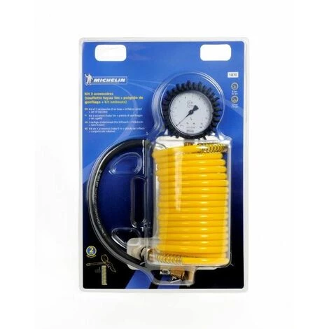 KIT COMPLET POUR COMPRESSEUR COMPRENANT : 1 Flexible 5 mĂštres raccords rapides – 1 Jeu de 3 embouts de gonflage – 1 PoignĂ©e de gonflage raccord rapideHomologuĂ©e, plombĂ©e CE, ManomĂštre HomologuĂ© par Michelin, mais non estampillĂ©,