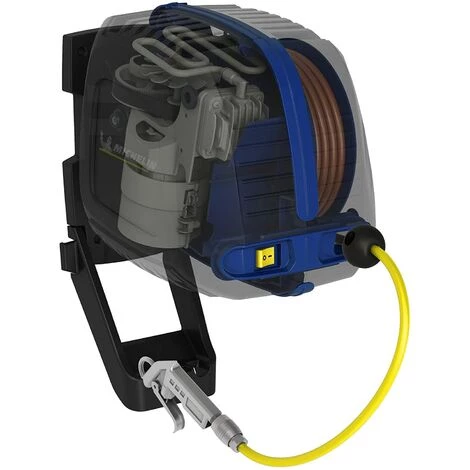 COMPRESSEUR D’AIR MURAL AVEC ENROULEUR AUTOMATIQUE D’AIR 10 METRES INTEGRE, livrĂ© avec 1 soufflette bec court, 1 enrouleur automatique 10 metres, 1 support mural avec vis de fixation – LĂ©ger et compact, facile a installer – FOURNI AVEC RACCORD RAPIDE – MODELE 1,5cv SANS HUILE- UTILISATION: NETTOYER, PEINDRE, GONFLER, AGRAFER
