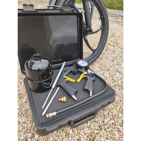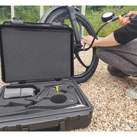 Michelin Kit accessoires pour compresseur spécial vélo – GONFLER, LAVER, SECHER VOTRE VELO ! Format valise pour gain de place, et facilité de transport et de rangement, Ce Kit Gonflage de marque Michelin contient: Un pistolet de gonflage – Un pistolet de lavage – Une buse de gonflage, Pression: 4-8 Bars – Poids: 2kg – Dimensions: 12larg x 30Haut x 35Long cm