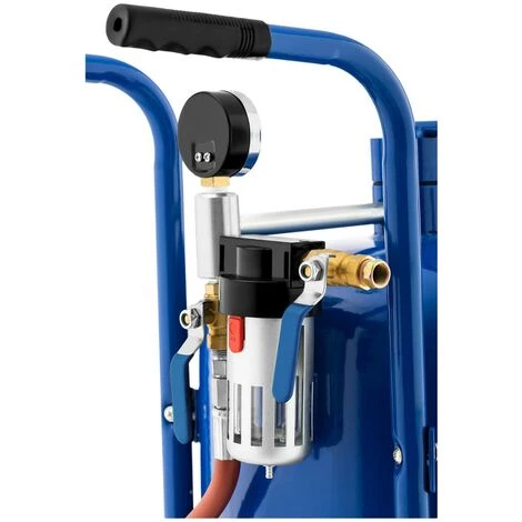 Sableuse mobile – 76 l – 9 barsLa sableuse mobile MSW-MS76A de MSW est l’outil efficace pour le traitement rapide des surface, tel que l’enlèvement de la rouille, même des points de rouille durcis, ou l’enlèvement de la peinture ancienne et des salissures tenaces. La machine de sablage est appropriée pour les bricoleurs au garage et les amateurs semi-professionnels en atelier. La sableuse peut contenir 76 litres confortables de produit abrasif et garantit ainsi un travail sans interruptions, sans avoir à remplir à nouveau le réservoir. Elle est idéale pour le métal, le verre, la brique, le plastique ou le bois, par exemple, lors des travaux de restauration des vieux meubles.