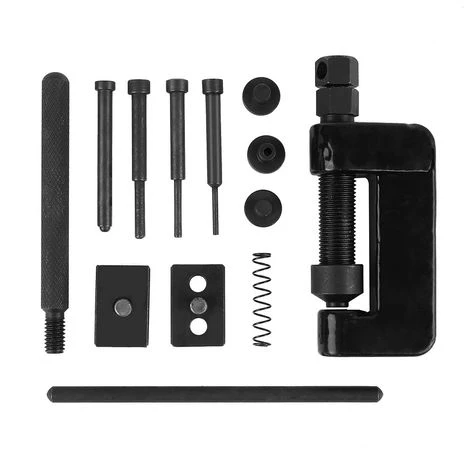 Cette chaîne séparateur ensemble d’outils permet facilemdériveter et de sertir la chaine de moto.Tous les outils sont fabriqués en acier forgé de haute qualité.Indispensable pour le démontage et le montage des chaînes de transmission (de #35 à #630).Vous pouvez également travailler sur la chaîne # 520 par les rivets.Il comprend 3 axes de tailles différentes pour s’adapter à la plupart des chaînes (2mm, 3mm, 4mm).